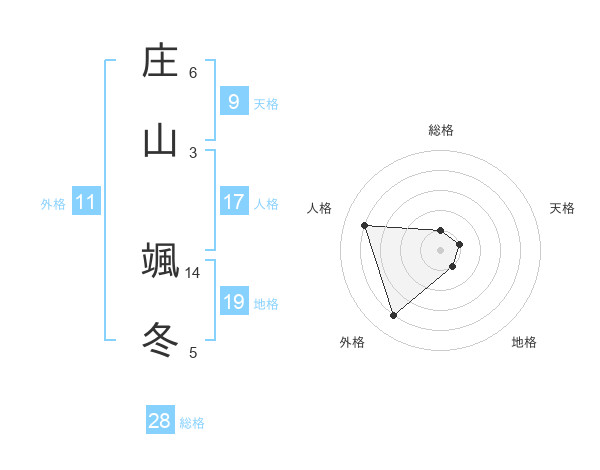 庄山 颯冬さんの外格は11画の4点!