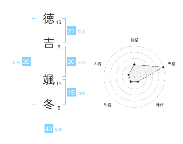 徳吉 颯冬さんの天格は21画の5点!