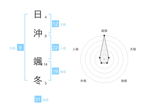 日沖 颯冬さんを姓名の画数から五運を鑑定
