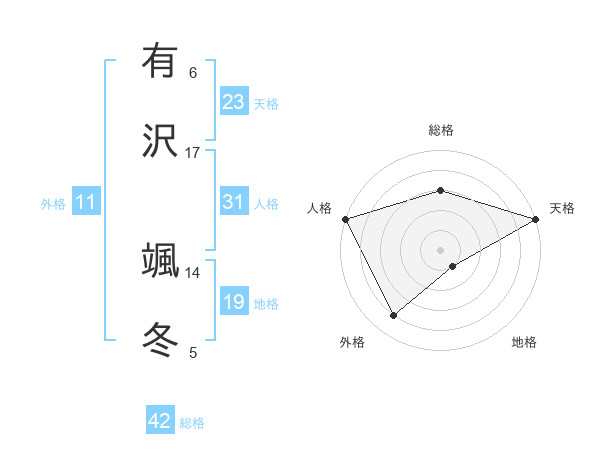 有沢 颯冬さんの総格は42画の3点!