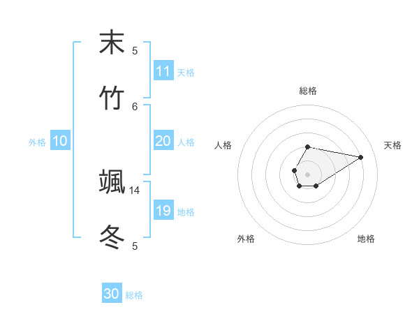 末竹 颯冬さんを姓名の画数から五運を鑑定