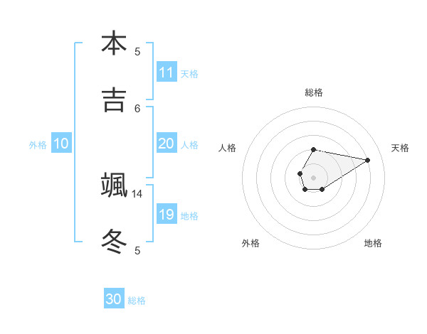 本吉 颯冬さんを姓名の画数から五運を鑑定