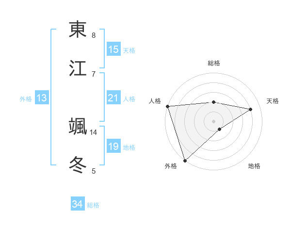 東江 颯冬さんの人格は21画の5点!