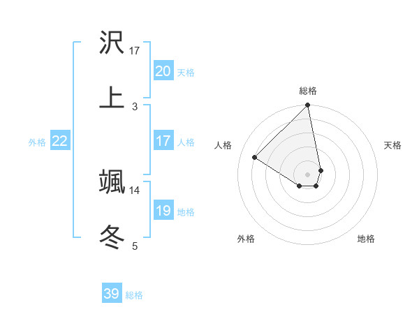 沢上 颯冬さんの総格は39画の5点!