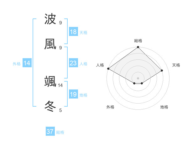 波風 颯冬さんを姓名の画数から五運を鑑定