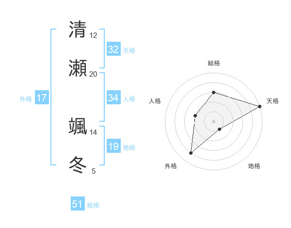清瀬 颯冬さんの総格は51画の3点!