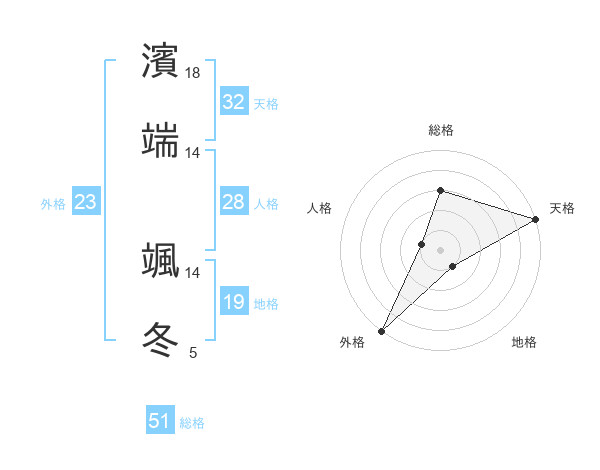 濱端 颯冬さんの天格は32画の5点!