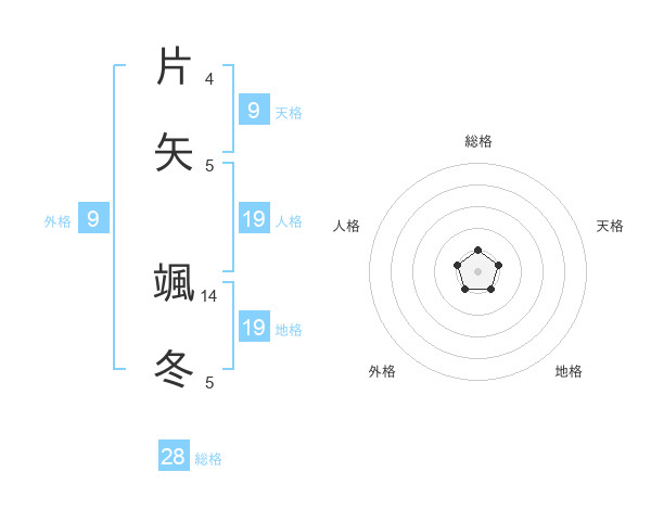 片矢 颯冬さんの総格は28画の1点!