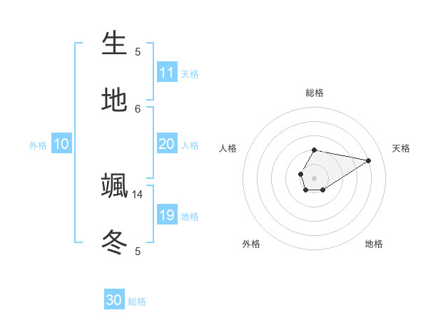 生地 颯冬さんを姓名の画数から五運を鑑定