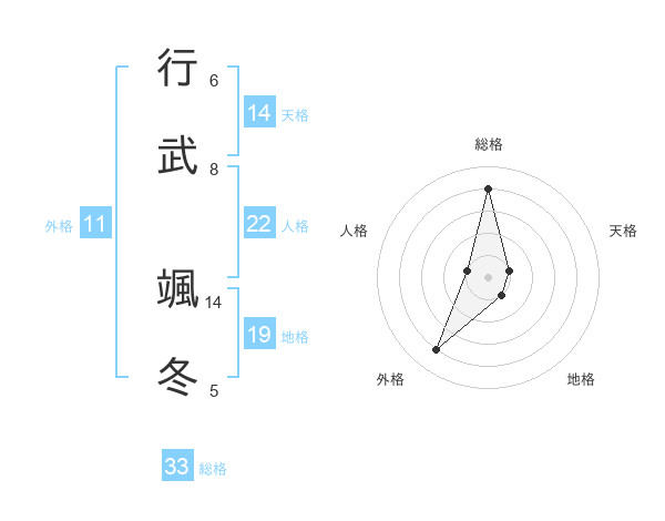 行武 颯冬さんの総格は33画の4点!