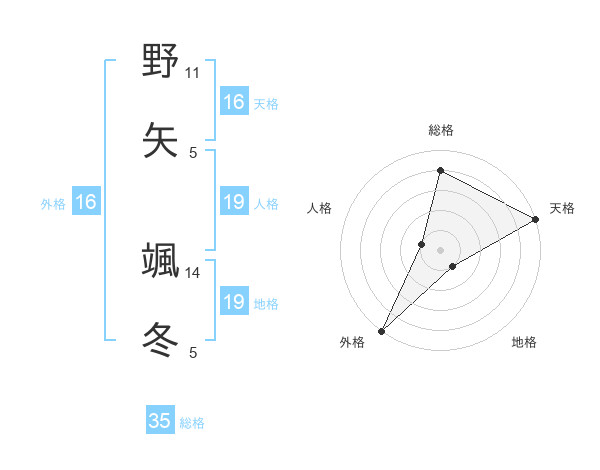 野矢 颯冬さんの天格は16画の5点!