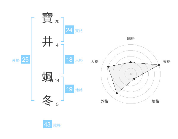 寶井 颯冬さんの天格は24画の5点!
