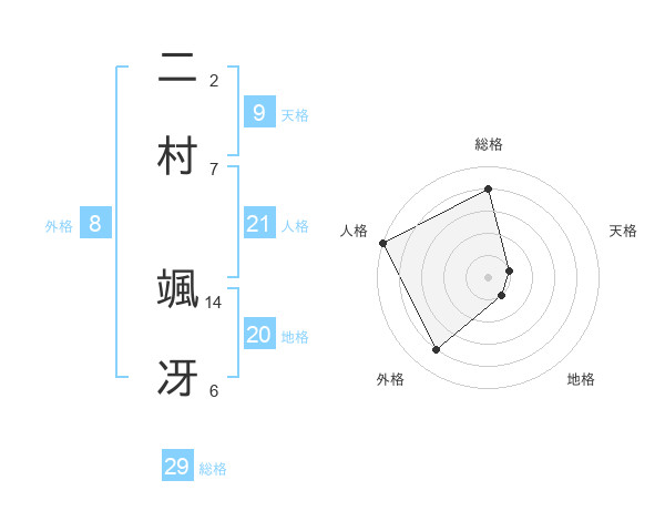 二村 颯冴さんの総格は29画の4点!