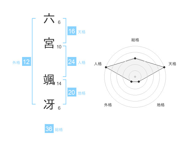 六宮 颯冴さんの総格は36画の3点!