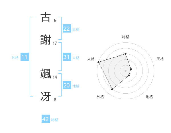 古謝 颯冴さんの人格は31画の5点!