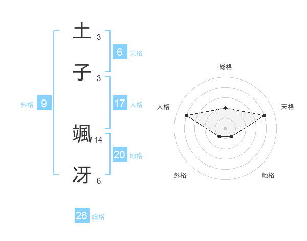 土子 颯冴さんの総格は26画の2点!