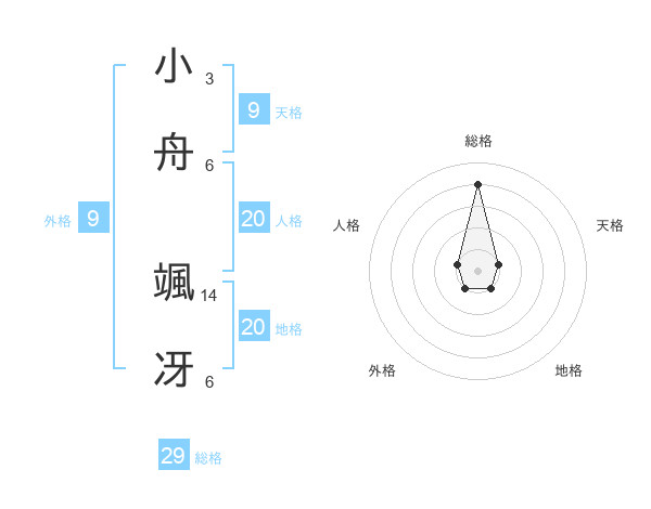 小舟 颯冴さんの総格は29画の4点!