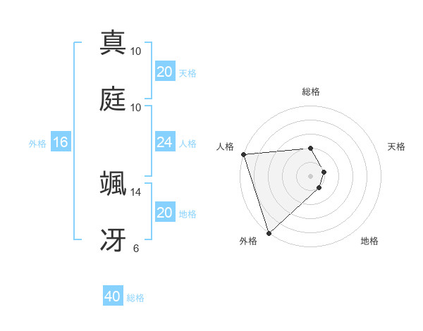 真庭 颯冴さんの天格は20画の1点!