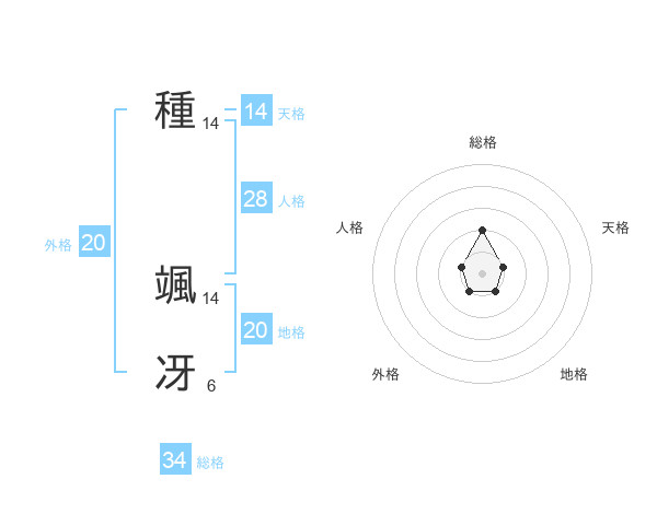 種 颯冴さんの外格は20画の1点!