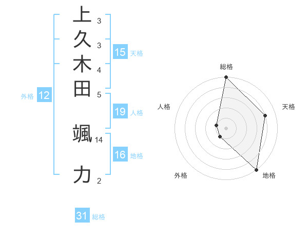 上久木田 颯力さんの総格は31画の5点!