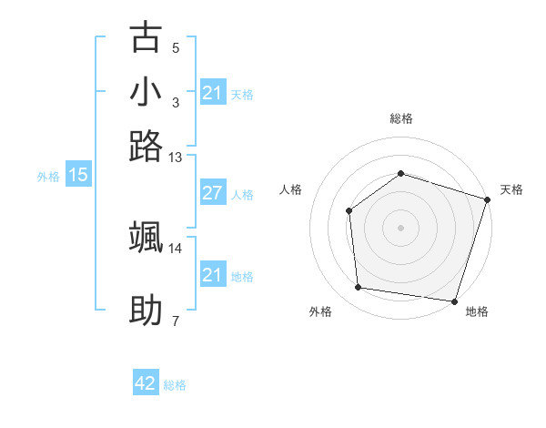 古小路 颯助さんの天格は21画の5点!