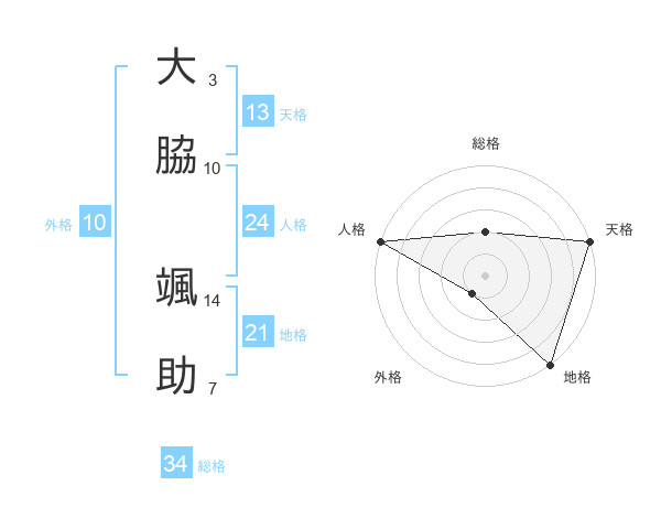 大脇 颯助さんの総格は34画の2点!