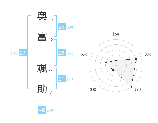 奥富 颯助さんを姓名の画数から五運を鑑定
