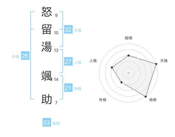 怒留湯 颯助さんの天格は32画の5点!