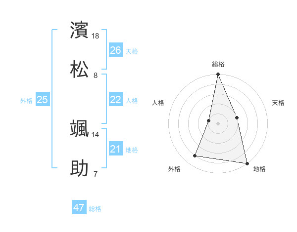 濱松 颯助さんの総格は47画の5点!