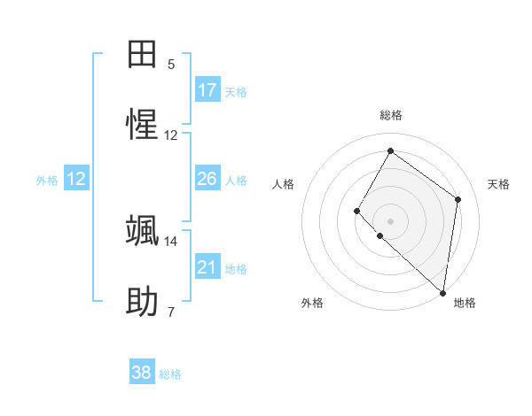 田惺 颯助さんを姓名の画数から五運を鑑定