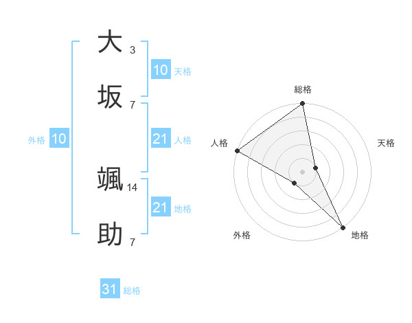 大坂 颯助さんの総格は31画の5点!
