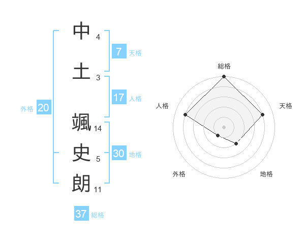 中土 颯史朗さんを姓名の画数から五運を鑑定