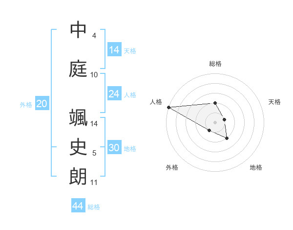 中庭 颯史朗さんの総格は44画の2点!