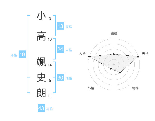 小高 颯史朗さんを姓名の画数から五運を鑑定