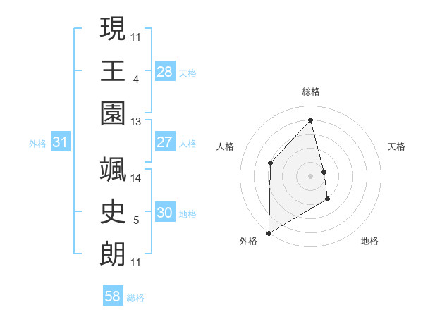 現王園 颯史朗さんを姓名の画数から五運を鑑定