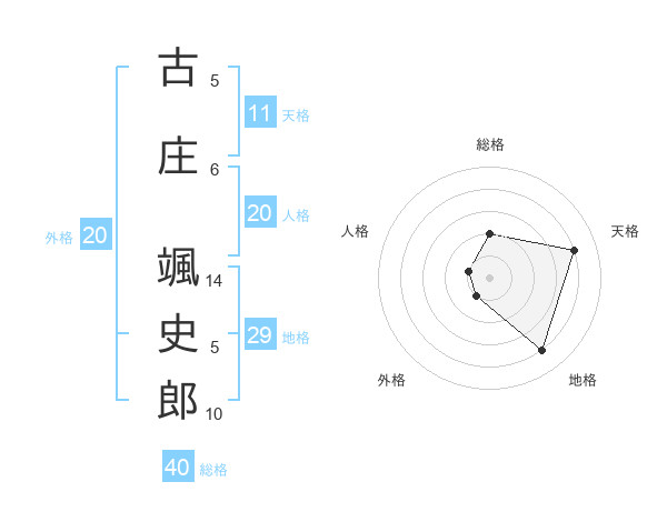 古庄 颯史郎さんを姓名の画数から五運を鑑定