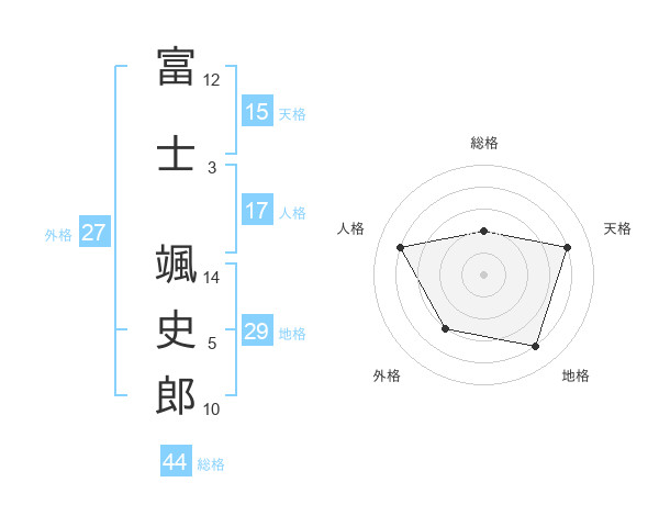 富士 颯史郎さんを姓名の画数から五運を鑑定