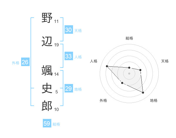 野辺 颯史郎さんの総格は59画の1点!
