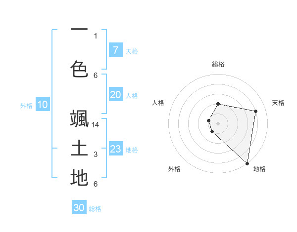 一色 颯土地さんの総格は30画の2点!