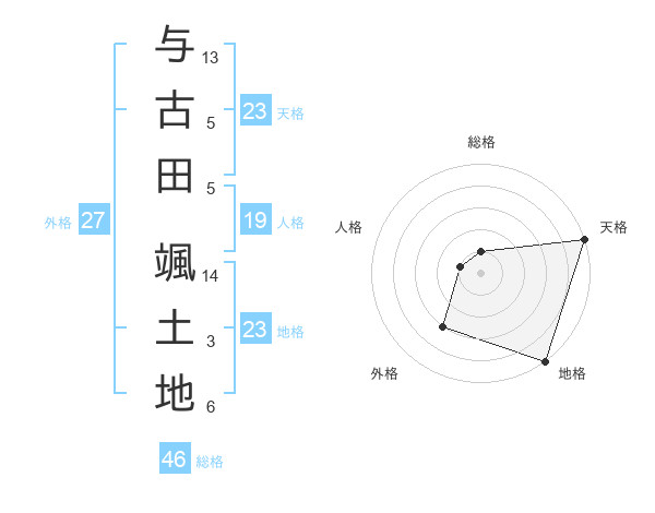 与古田 颯土地さんを姓名の画数から五運を鑑定