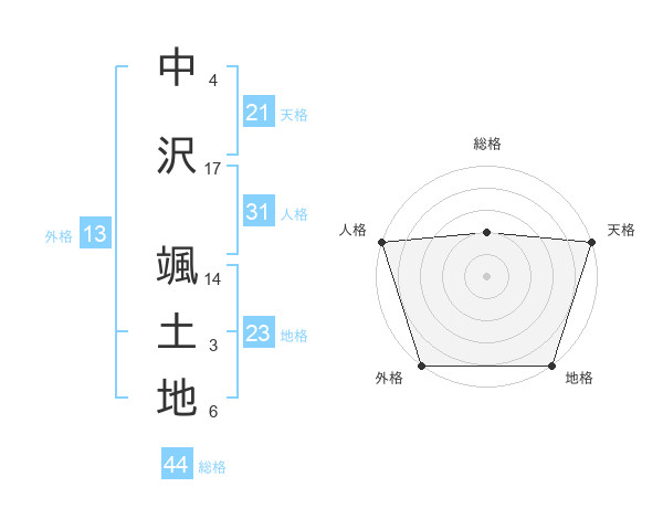 中沢 颯土地さんの外格は13画の5点!