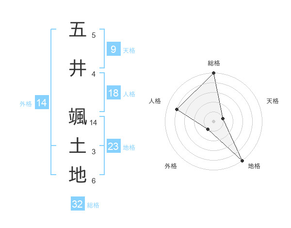 五井 颯土地さんを姓名の画数から五運を鑑定