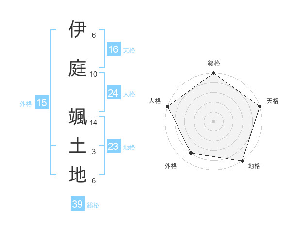 伊庭 颯土地さんを姓名の画数から五運を鑑定