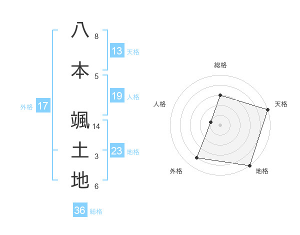 八本 颯土地さんを姓名の画数から五運を鑑定