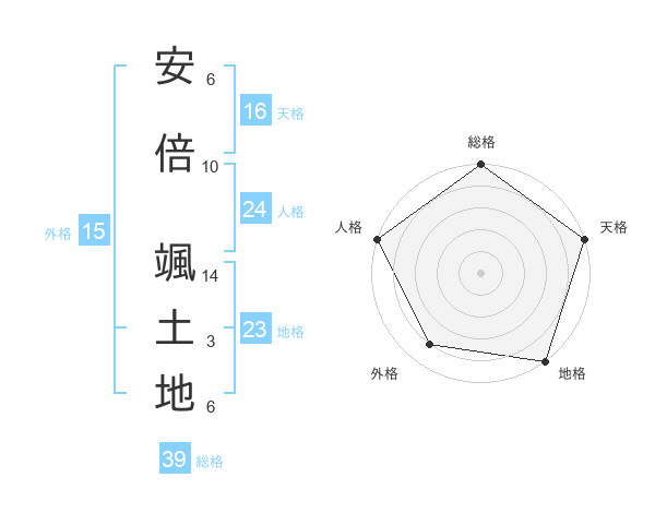 安倍 颯土地さんの天格は16画の5点!