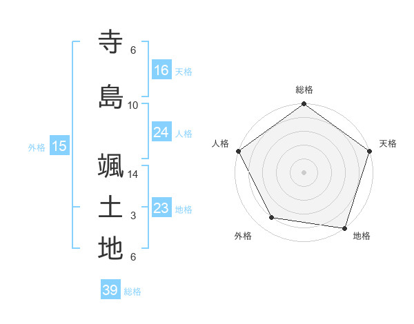 寺島 颯土地さんの総格は39画の5点!