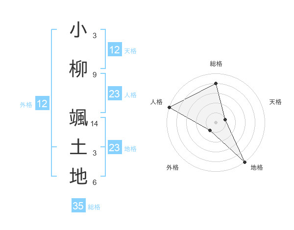 小柳 颯土地さんの総格は35画の4点!