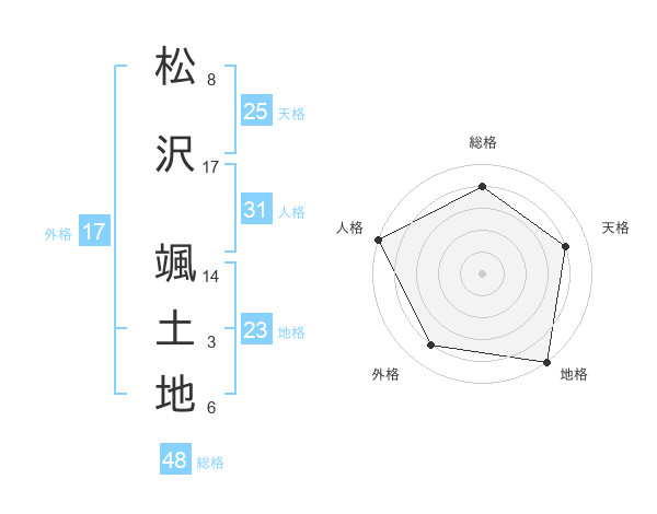松沢 颯土地さんを姓名の画数から五運を鑑定