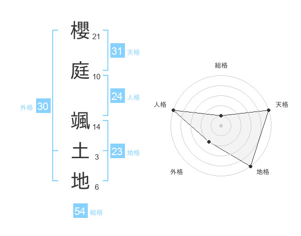 櫻庭 颯土地さんを姓名の画数から五運を鑑定