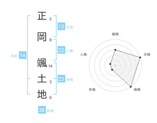 正岡 颯土地さんを姓名の画数から五運を鑑定